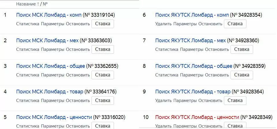 Рекламную кампанию мы разделили по городам и товарным направлениям, чтобы отслеживать какие именно товары наиболее интересны и делить бОльший упор на эти группы товаров.